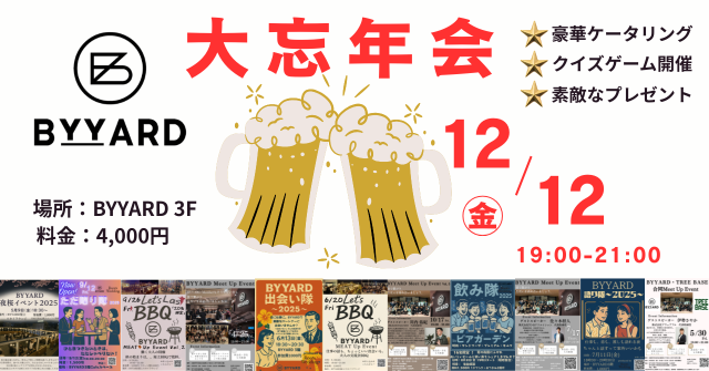 この度、札幌シェアオフィスBYYARDで、大忘年会の開催が決定しました!